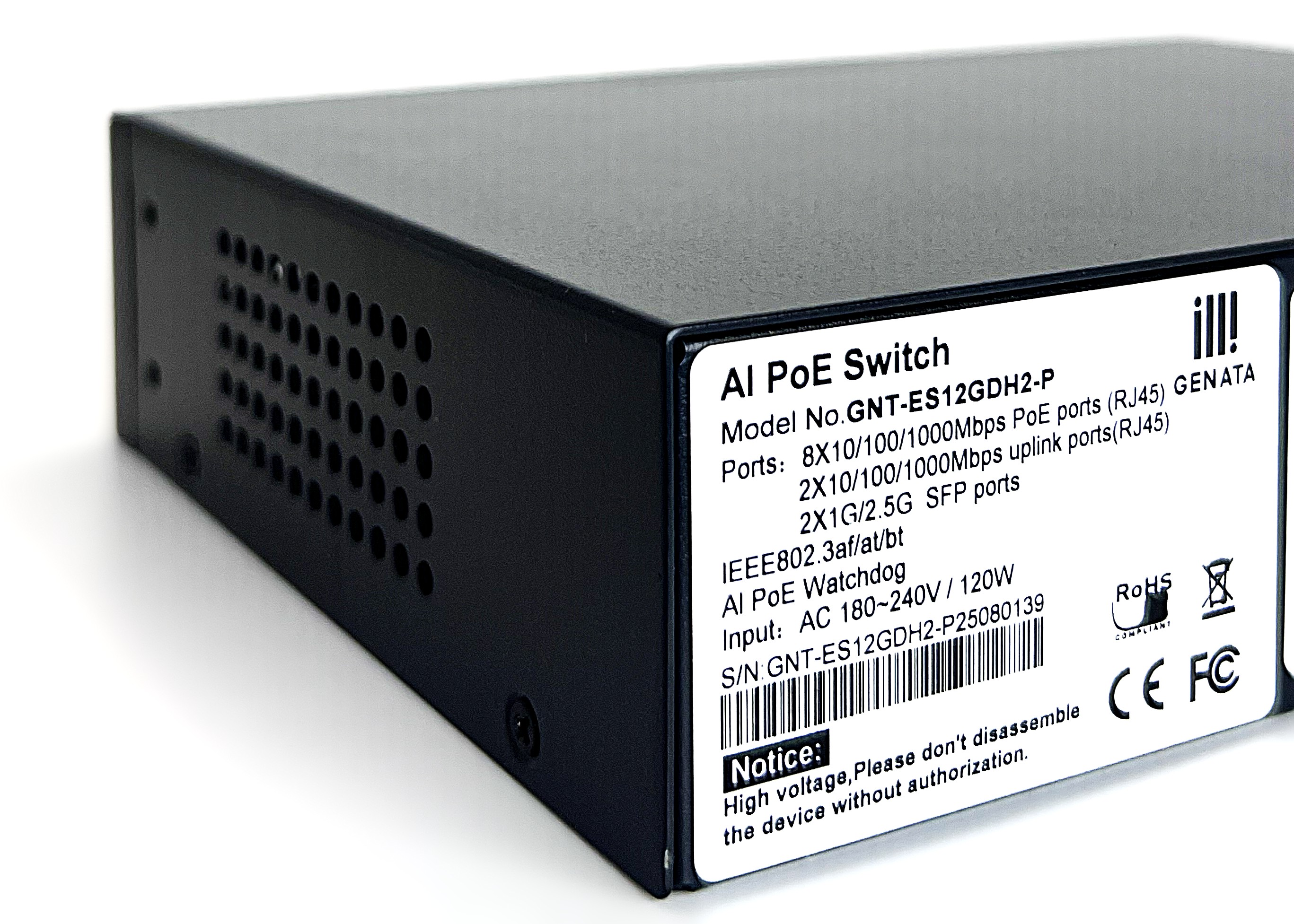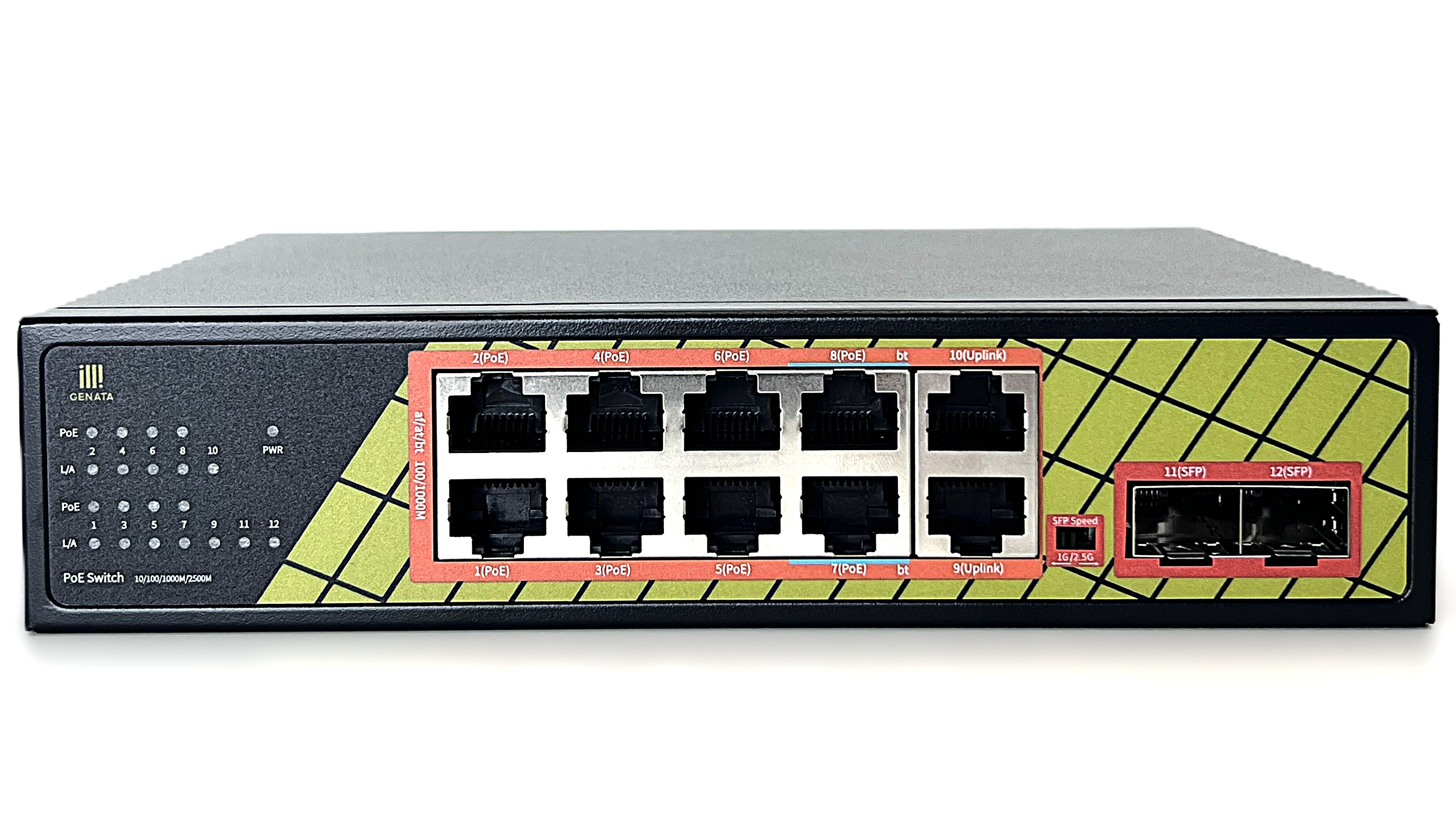 switch PoE Gigabit t GNT-ES12GDH2-P conçu pour les réseaux à forte charge. Avec une capacité de commutation exceptionnelle de 30 Gbps, il est capable de gérer simultanément 8 caméras haute résolution et des transferts de données massifs via ses ports SFP 2.5G, garantissant un réseau sans aucune latence.
